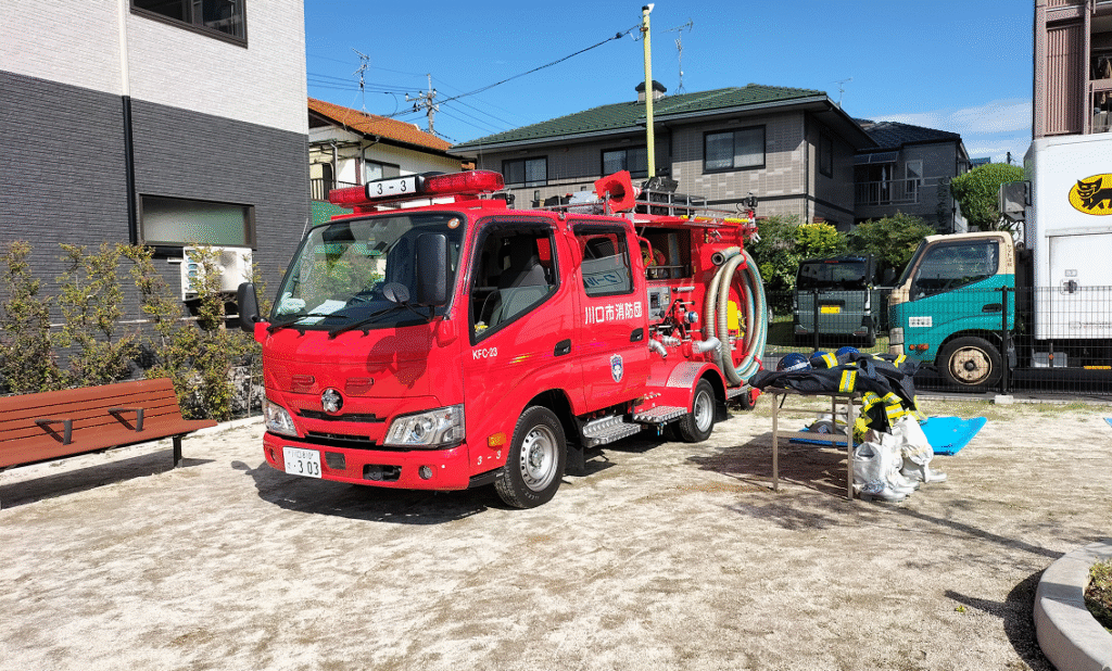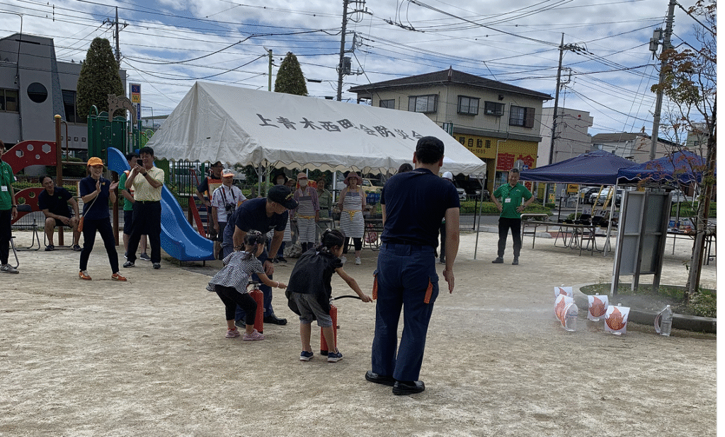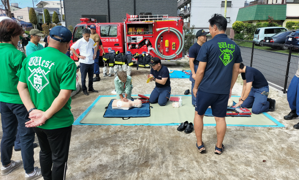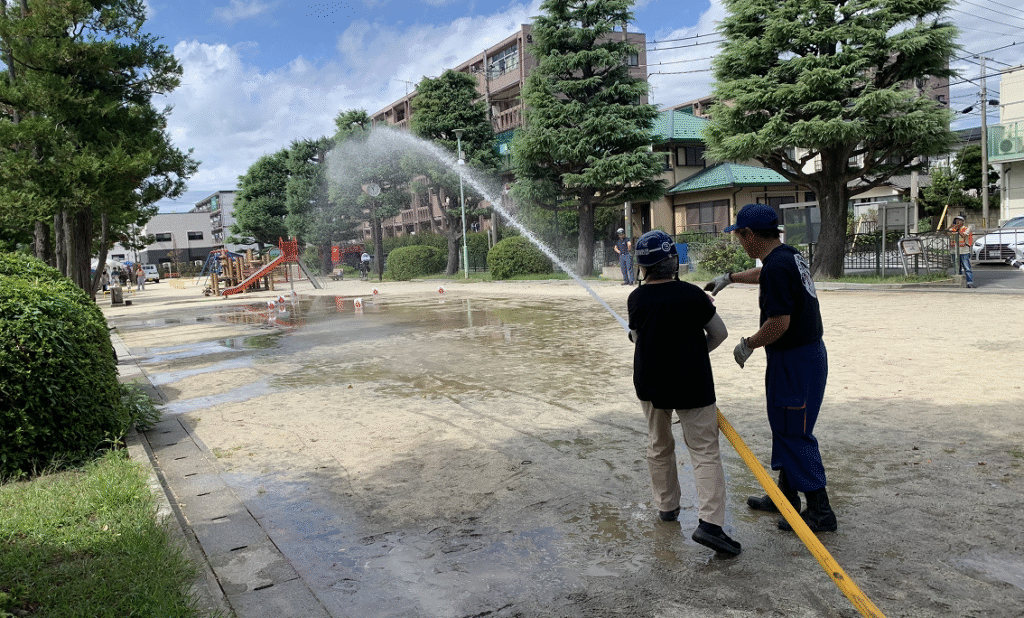 令和7年9月21日(日)、中央通り公園で防災訓練を実施しました。今回の防災訓練ではAED体験、放水訓練、防災クッキング、消火器訓練を行いました。消防上青木分署並びに上青木消防団の皆さんにご協力いただき、地域住民の防災力の向上、防災意識の高揚を図りました。